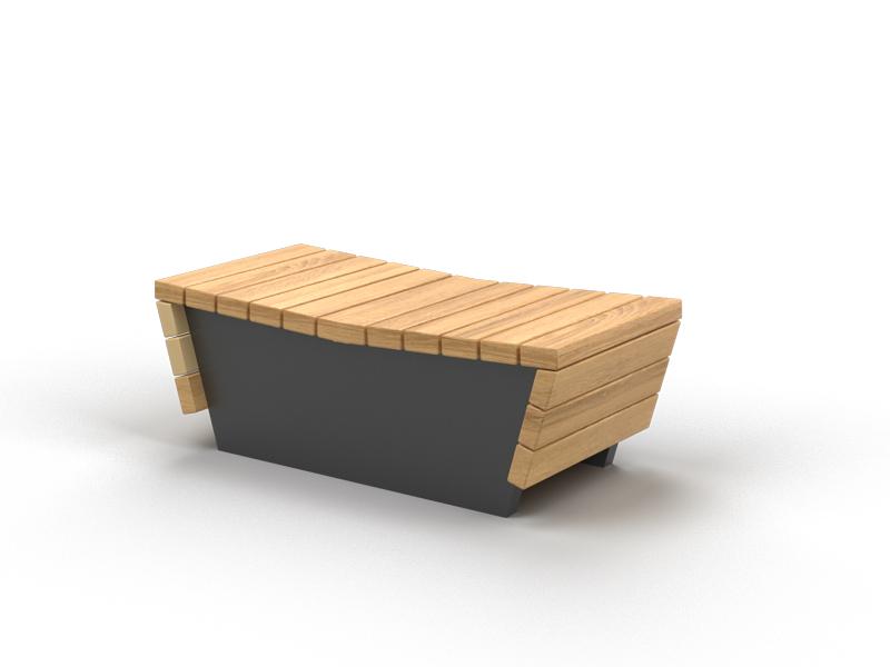 Конструкция и материалы: Опоры – сталь с порошковым покрытием (графитовый RAL 7024, матовый) для антивандальной прочности. Сиденье – ламели ольхи с антисептиком и двухслойным маслом (Палисандр), обеспечивающим натуральность и защиту от осадков.