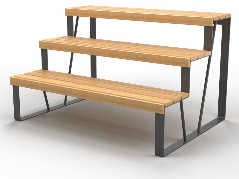 Конструкція та матеріали:Опори – сталь з порошковим покриттям (графітовий RAL 7024, матовий) для антивандальної міцності. Сидіння та спинка – ламелі вільхи з антисептиком та двошаровим маслом (Палісандр), що зберігає натуральність та стійкість до опадів.