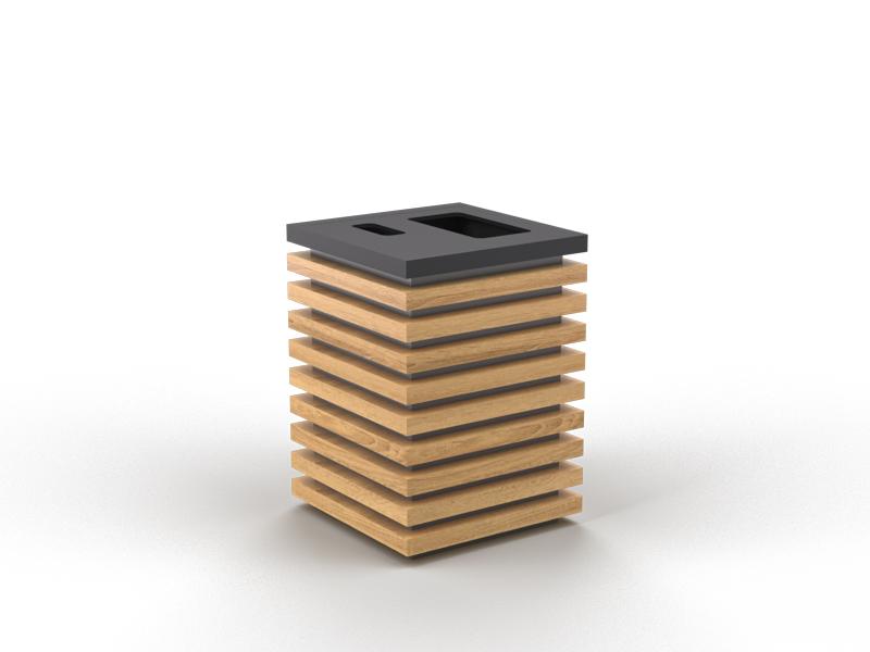 Конструкція та матеріали:Корпус – сталь з порошковим покриттям (графітовий RAL 7024, матовий) для антивандальної міцності. Облицювання – ламелі вільхи з антисептиком та двошаровим маслом (Палісандр), що зберігає натуральність та стійкість до опадів.